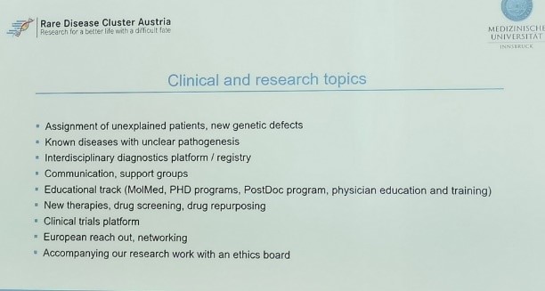 Veranstalter war die Medizinische Universität Innsbruck in Zusammenarbeit mit Pro Rare Austria.