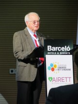 Die Eröffnungsrede, welche von Frau Lucia Davigo (AIRett) gemeinsam mit Thomas Bertrand in seiner Funktion als Präsident von Rett-Syndrome Europe (RSE) gehalten wurde, unterstrich die besondere Bedeutung von Kongressen über das Rett-Syndrom. Wissenschaftler und Ärzte, welche an dieser desaströsen Krankheit forschen, verbindet gleichermaßen Therapeuten, Eltern und Angehörige von Patienten. Ausgedrückt mit den Worten von Dr. Walter Kaufmann: