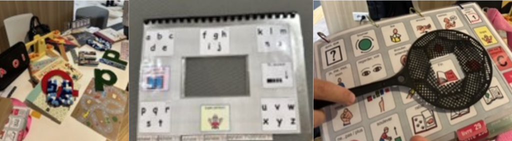 Des Weiteren war dort auch ein Stand von Therapeuten zu finden, die aufzeigten, mit welchen Materialien sie im Zusammenhang mit Kommunikation und Alphabetisierung arbeiten.