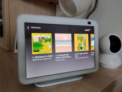 Mareike hört sich seit dieser Zeit fast jeden Tag eine und gerne auch noch eine weitere Geschichte an. Mit Begeisterung ist sie dabei und freut sich jedes Mal, wenn ich die Worte sage: “Alexa – zeige meine Hörbücher“. Dann weiß sie, jetzt kommt eine Geschichte für sie. Das hat sich als sehr praktisch erwiesen, da verschiedene Geschichten als Hörbücher geladen werden können und per Zuspruch gestartet werden können.