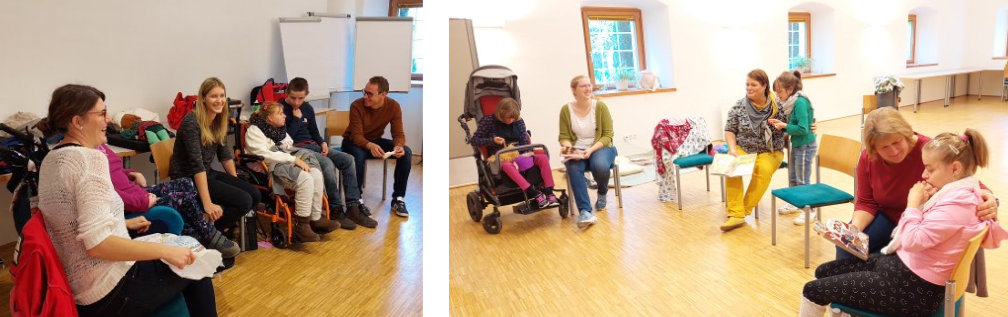 Trotz Regens waren acht Familien angereist, um sich rund um die Themen Rehabilitation für Kinder und Erwachsene, „Neues aus der Rett-Welt“, sowie über das Erb- und Familienrecht zu informieren.
