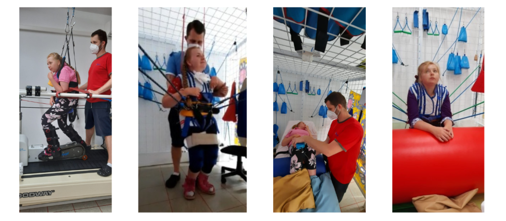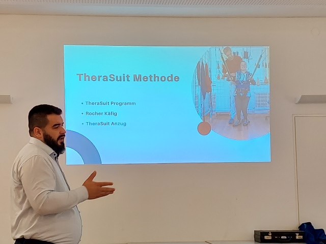 Am Beispiel von TheraSuit – diese Behandlungsmethode ist in Österreich einzigartig – ist es möglich, die Bewegungen ohne Einschränkung der Beweglichkeit des Patienten zu korrigieren. Bei dieser Therapie wird in einem sogenannten Rocher-Käfig mit den Orthesen TheraSuit, das sind am Körper äußerlich angebrachte orthopädische Hilfsmittel, die Gelenke, Muskeln sowie Knochen entlastet.