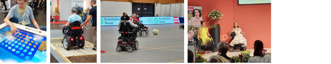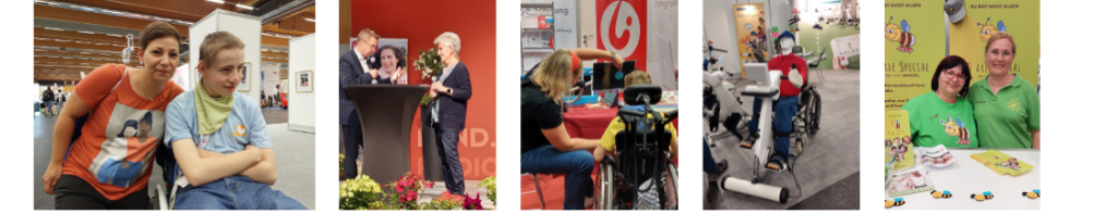 Wir kamen an einem Motomed, dass ich aus der Schule kenne, einem Swiss-Trac und vielen anderen Hilfsmitteln für Auto und zu Hause vorbei, die alle die Lebensqualität verbessern können. Das ausgestellte Ornamin- Geschirr erinnerte Mama an einen Beitrag „Hilfsmittel im Fokus“ im Rundbrief 2021.