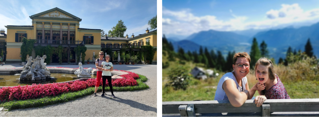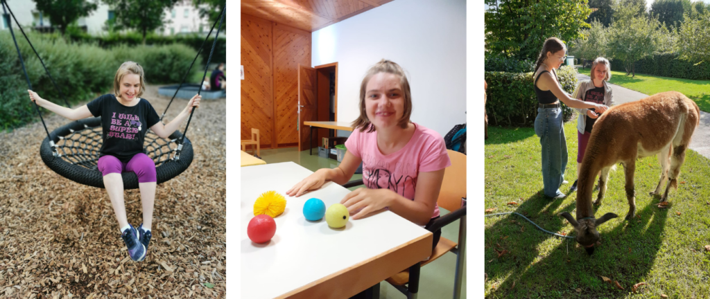 Julia gefiel es sehr gut und sie hatte großen Spaß in einer Gruppe mit neuen Kindern bzw. Jugendlichen zu sein. Die Gruppe bestand aus 6 Jugendlichen mit unterschiedlichen Beeinträchtigungen. Betreuungszeiten waren von Montag, Dienstag, Donnerstag von 7:45 – 16:15 Uhr und Mittwoch, Freitag von 7:45 – 14:15 Uhr. Zweimal gab es sogar einen Kino-Abend von 18.00 – 20:30 Uhr. Es gab auch tolles Unterhaltungsprogramm wie Keramikcafe, Klettern, Lama Wanderung, Kutschenfahrt durch Bad Ischl und eine Fahrt mit dem Bummelzug. Das Mittagessen mit den Kids übernahmen auch die Betreuer:innen.