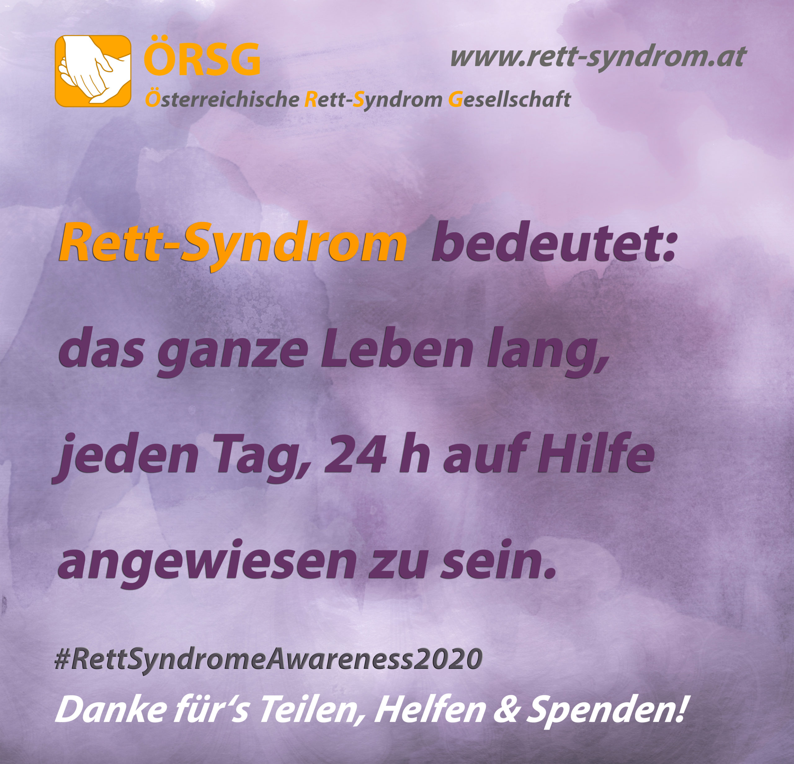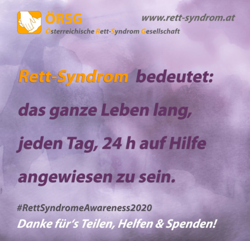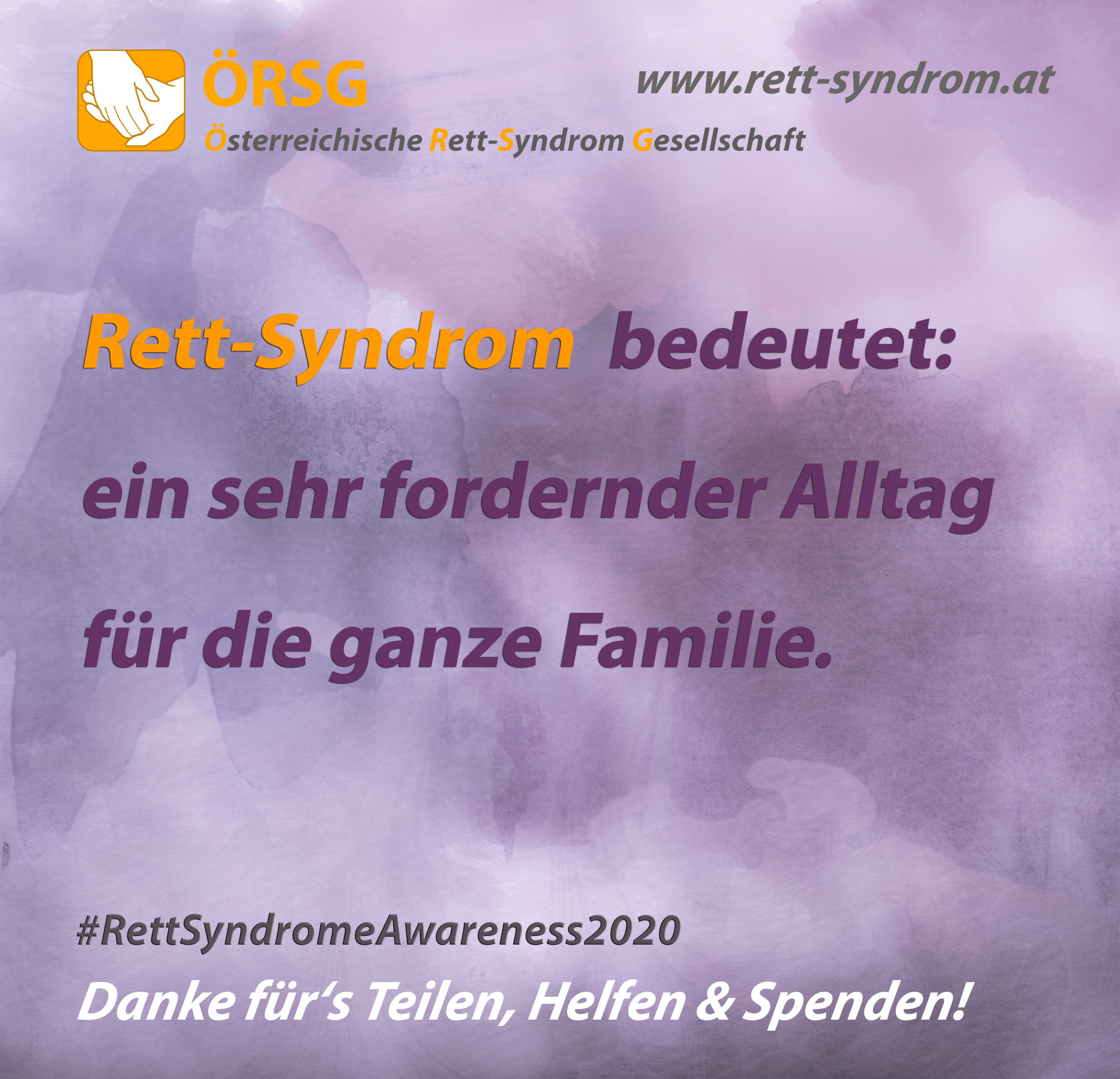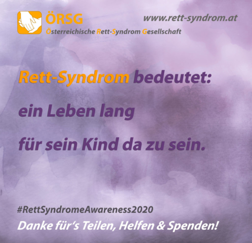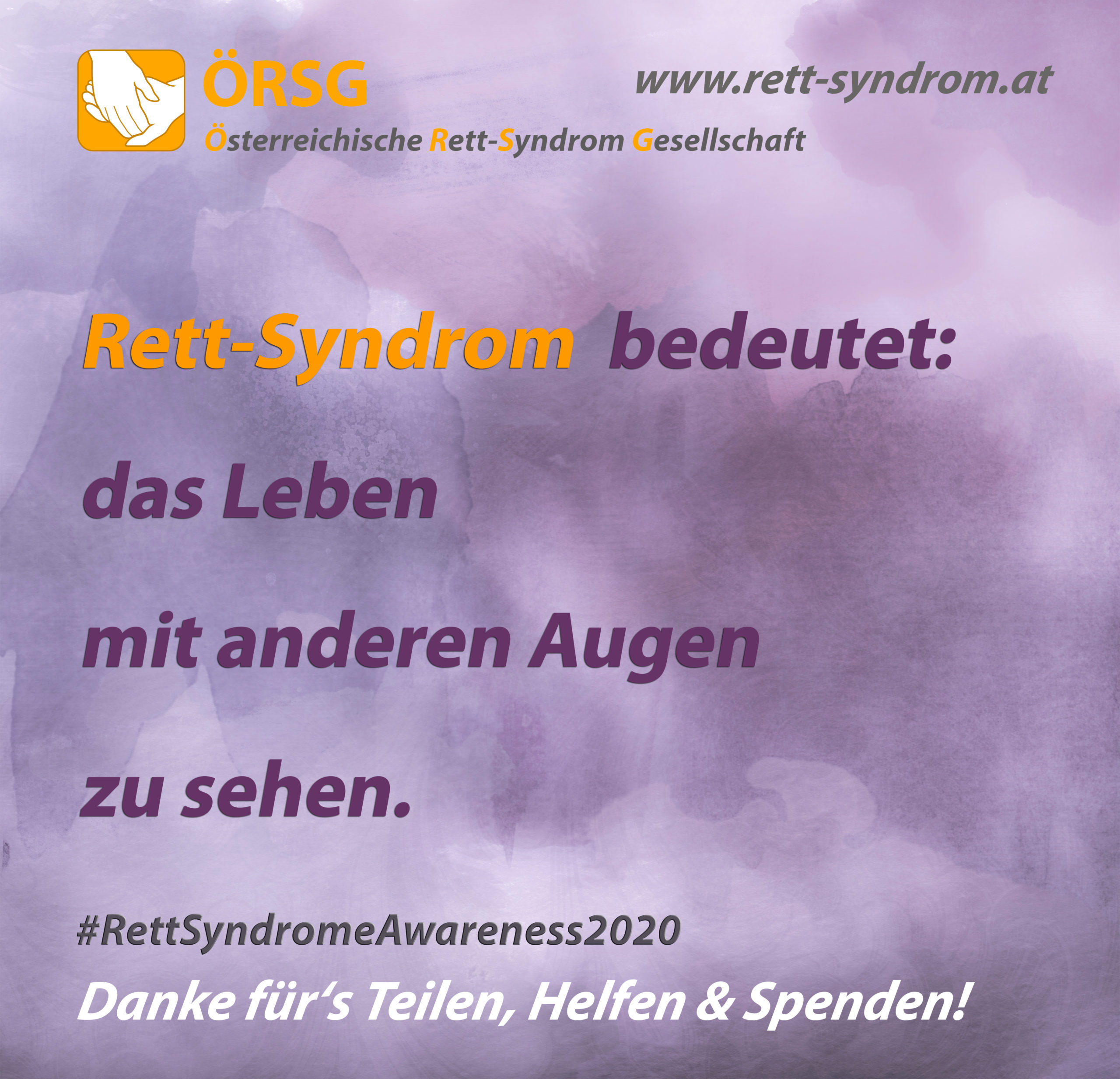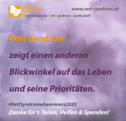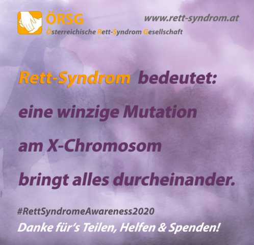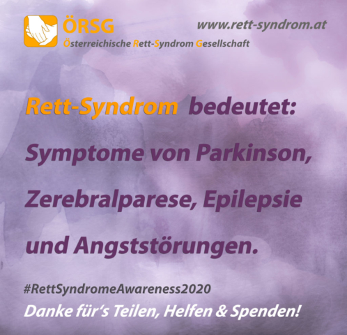 um auf das Rett-Syndrom aufmerksam zu machen. Darauf weist auch der Hashtag #RettSyndromeAwareness und #RettSyndromAwareness2020 hin.