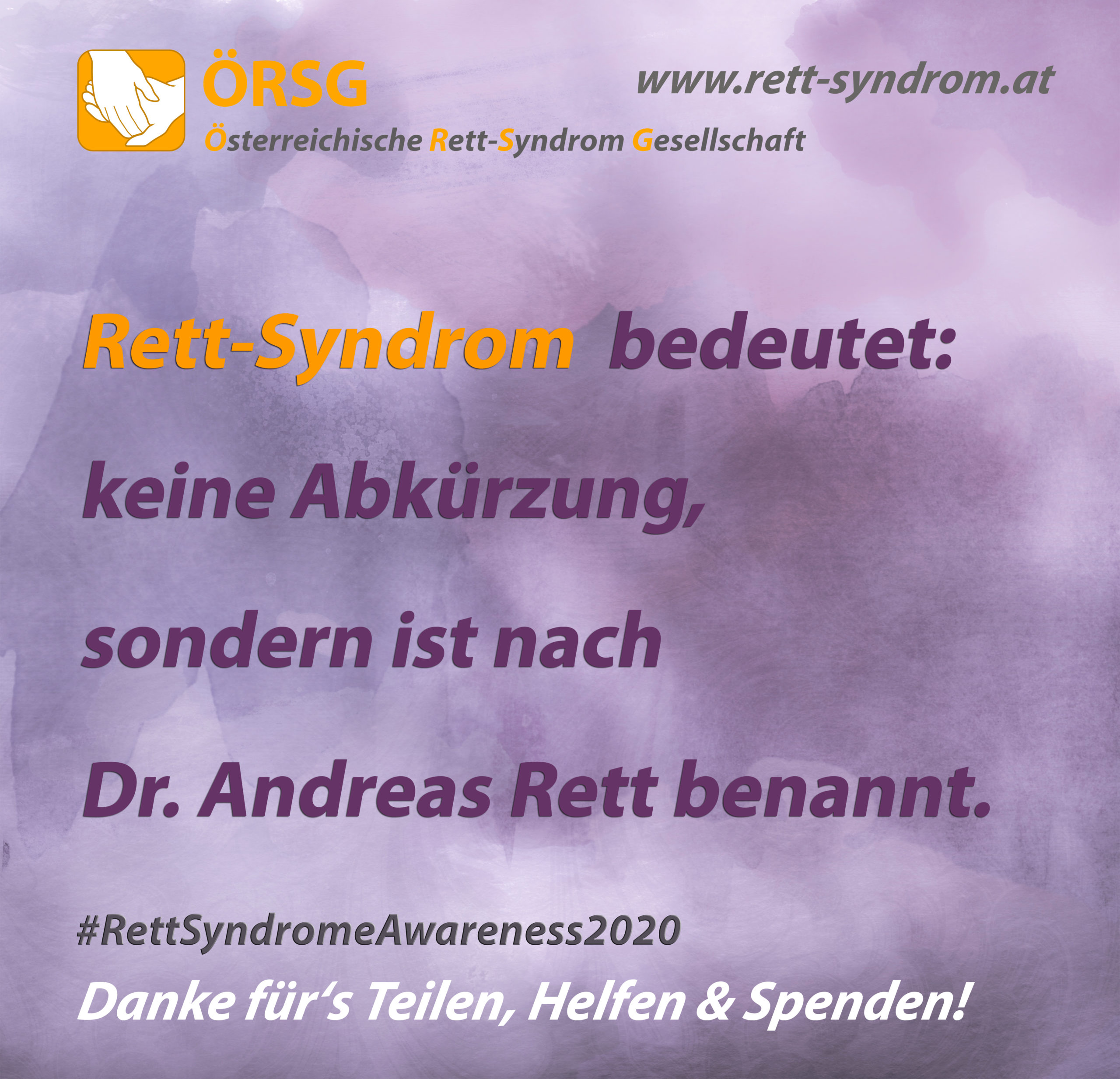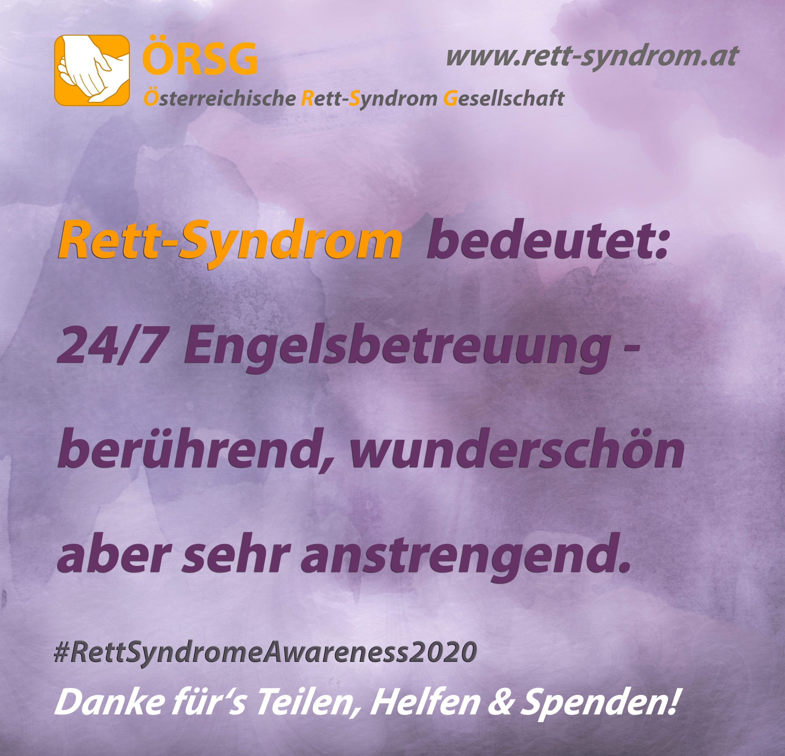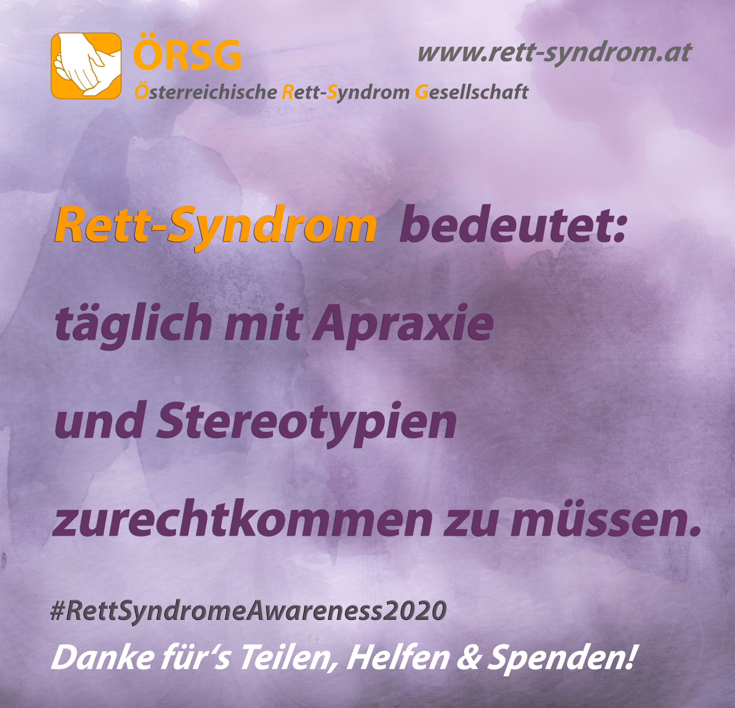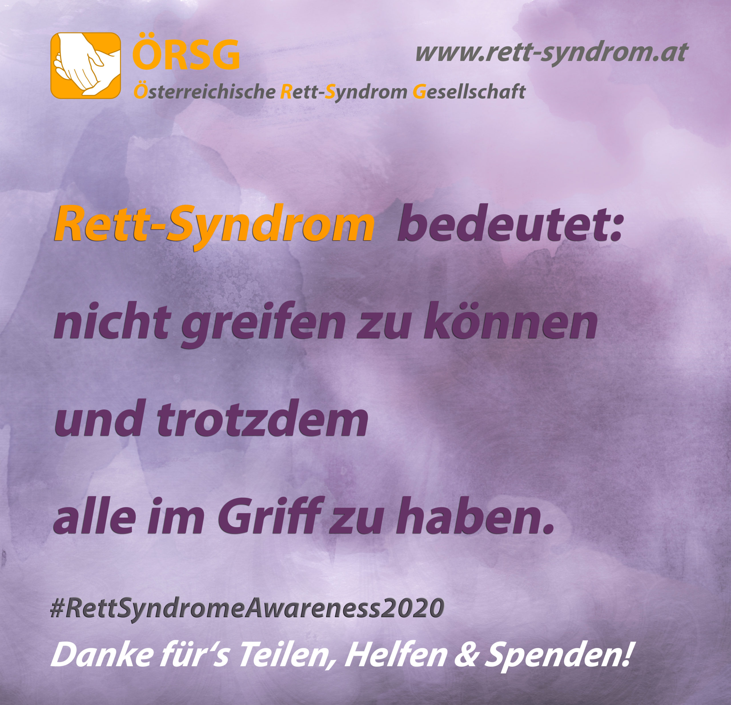 um auf das Rett-Syndrom aufmerksam zu machen. Darauf weist auch der Hashtag #RettSyndromeAwareness und #RettSyndromAwareness2020 hin.