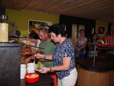 Wir sitzen jetzt also mit den besten Vorsätzen und um Geduld zu bemühend beim Mittagessen. Immerhin dauert es aber noch eine ganze Stunde bis unser Essen auf dem Tisch steht. Es hat sich also doch schon eine gewisse Ungeduld und leichte Verärgerung bereit gemacht. Da das Essen aber ausgezeichnet schmeckt, ist diese jedoch wie im Nu verflogen. Ich mag es auch, mit jemandem am Tisch zu sitzen, den man noch nicht so gut kennt. Jasmin, hat mich voll beeindruckt. Sie kann sich sehr gut verständigen, sie weiß genau was sie will. Sie hat sich auch sofort mit unserer Betreuerin angefreundet. Ihre Mama ist sehr um ihre Erziehung bemüht. Sie macht das auf eine ganz ruhige und liebevolle Art. Man kann also immer noch was lernen.