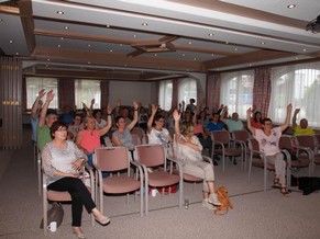 Um 9 Uhr ist die Übergabe unserer Kinder an die Betreuer. Die Birgit hat alles sehr gut organisiert und so klappt es wie immer tippi toppi. Ich glaub es ist gar nicht so einfach, immer so viele Betreuer zusammen zu bekommen. Und sie macht das ja auch schon ein paar Jahre lang. Ich glaube auch gehört zu haben, dass es da kurzfristig ein paar Änderungen gegeben hat. Also schon eine Herausforderung.Nach der Begrüßung und ein paar kurzen Infos geht es mit dem Ersten interessanten Vortrag los. Das Thema ist: Faszien – ein Modewort? Die Referentin, Frau Mag. Johanna Pachler ist Physiotherapeutin und Atempädagogin. Ich finde sie hat eine tolle Art die Dinge auf sehr bildliche Art und Weise wiederzugeben. Die Faszien sind ein äußerst wichtiger Bestandteil unseres Körpers. Da wir ja hauptsächlich aus Wasser bestehen, unser Skelett an nichts aufgehängt ist und es sehr schmerzhaft wäre, wenn die Muskeln und Sehnen direkt an unseren Knochen reiben würden, sind die Faszien der Teil der alles miteinander verbindet. Sie vergleicht das mit Zuckerwatte und Gelatine, da diese Fasern sich genauso verhalten, wie wenn man Zuckerwatte vorsichtig auseinander zieht aber sie dennoch so glitschig und wabbelig sind. Sie zeigt uns auch ein kurzes Video von einer OP, in dem man diese