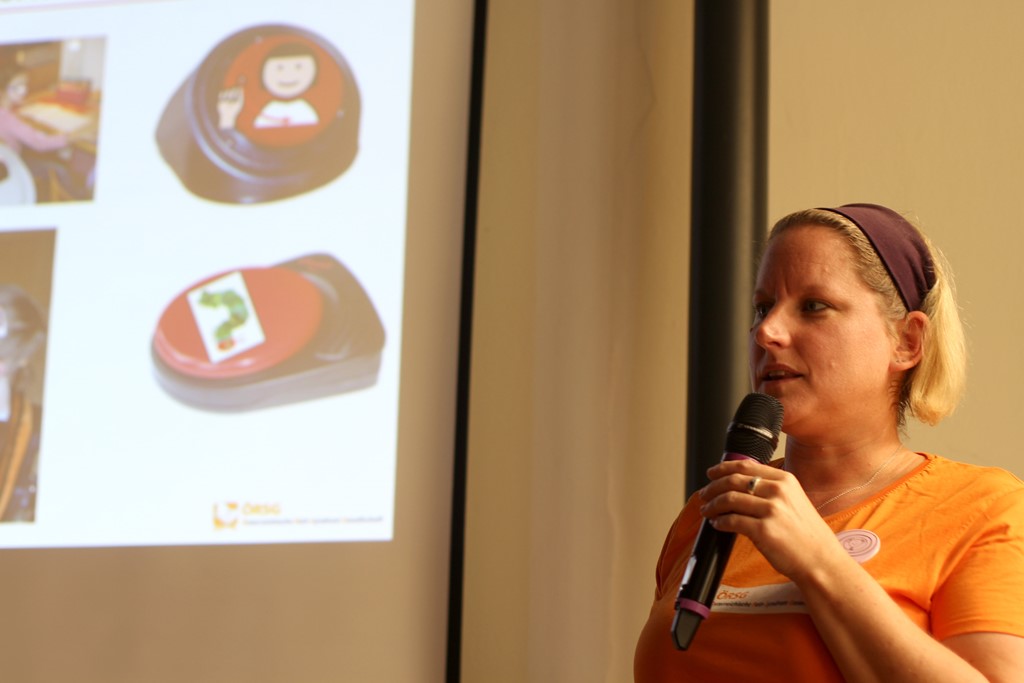 Aus Österreich sprach dann Romana Malzer, Sozialpädagogin und UK-Beraterin bei LIFEtool Linz sowie Mama der 15jährigen Isabella, die auch mit dem Rett-Syndrom lebt.