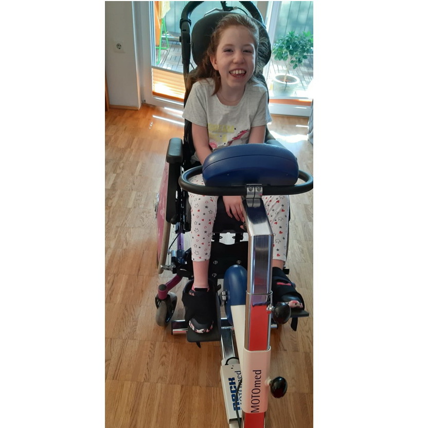 Der Motomed Bewegungstrainer bewegt schonend die Beine bzw. Arme (je nach Modell). Es kann passiv, motorunterstützt od auch aktiv mit eigener Muselkraft trainiert werden. Die eigenen Startwerte (zB Geschwindigkeit) können festgelegt werden, sodass das Training gleich mit persönlichen Einstellungen beginnt. Annalena schafft mittlerweile im Durchschnitt 30 min! Dazwischen hat sie auch immer wieder Abschnitte, wo sie mit eigener Muselkraft radelt, das ist toll!