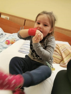 Diese speziellen Armschienen bekommt Isabella auf ihre Arme, wenn sie aufgrund der Handstereotypien ihre Finger wieder zu oft in den Mund steckt. Natürlich trägt sie diese Schienen dann nicht den ganzen Tag, sondern nur stundenweise. Die Rett-typischen Handstereotypien sind leider eine große Plage, denn sie verhindern, dass sie ihre Hände zielgerichtet einsetzen kann und durch das oftmalige in-den-Mund-stecken, können zb die Finger ganz wund und offen werden vor lauter beißen und lutschen oder aber die Zähne können sich verschieben, weil die Finger ständig Druck auf sie ausüben … Diese Arm-Schienen helfen unserer Tochter sehr, auch es für Außenstehende meist befremdlich wirkt, wenn sie sie trägt. Die Armschienen sind individuell angepasst und wurden vom Sanitätshaus unseres Vertrauens speziell für Isabella angefertigt.