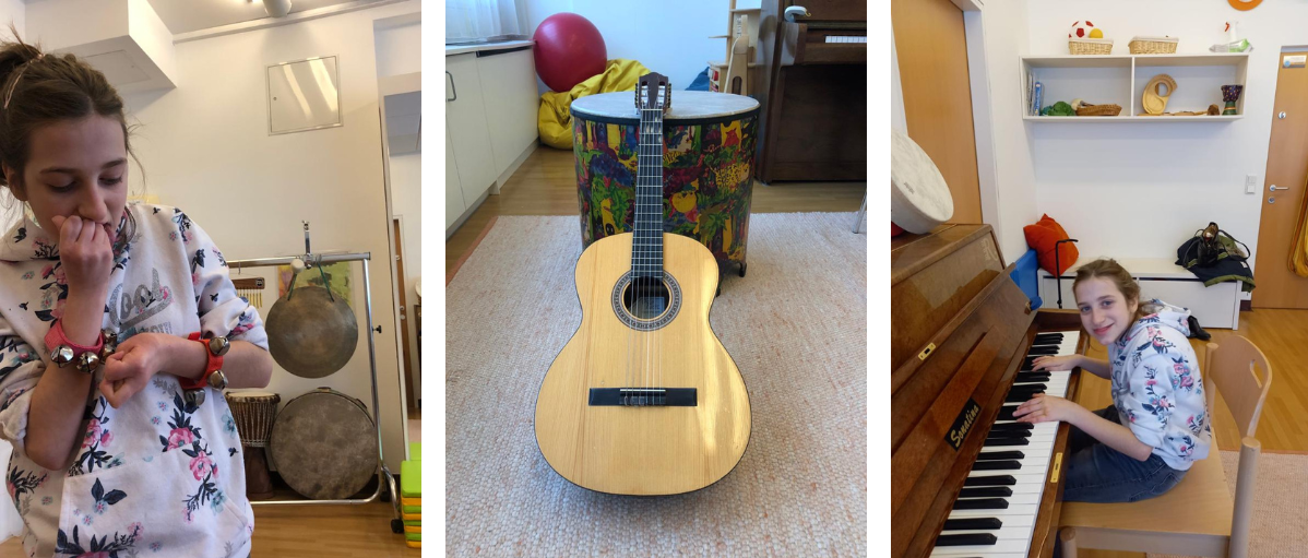 Bei der Musiktherapie kann ich mit Klängen, Rhythmen und Melodien meine Gefühle und meine körperliche Befindlichkeit ausdrücken. Die Musiktherapeutin regt mit ihrer therapeutischen Beziehung die Wahrnehmung an und dadurch entsteht und eröffnet sich ein schöner schöpferischer Spielraum, in dem neue Erfahrungen gemacht werden können.