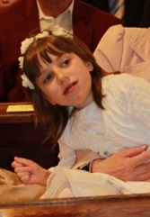 Es war gar nicht einfach eine Pfarre zu finden, die Erfahrung mit Kindern mit besonderen Bedürfnissen hat. Da half die Religionslehrerin von Sophies Schule und empfahl uns die Schulpfarre. Den Vorbereitungskurs hat ebenfalls die Religionslehrerin übernommen.