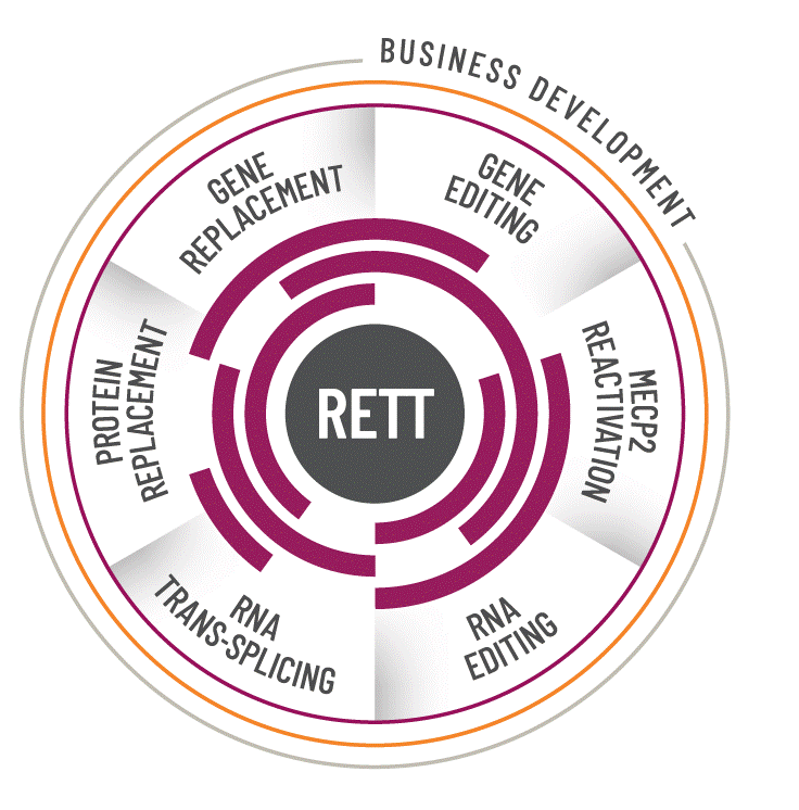 Aufbauend auf den wissenschaftlichen Ergebnissen der dreijährigen gezielten Forschungsarbeit der „roadmap“ wurde im Sommer 2020 ein neuer Angriff auf das Rett Syndrom gestartet. CURE 360. In diesem Programm sollen nun diese sechs Therapieprogramme – Gen-Ersatz, Gen-Editing, MECP2-Reaktivierung, RNA-Editing, RNA-Trans-splicing, Protein-Ersatz – vorangetrieben und vor allem auch die Biopharmaindustrie miteinbezogen werden.