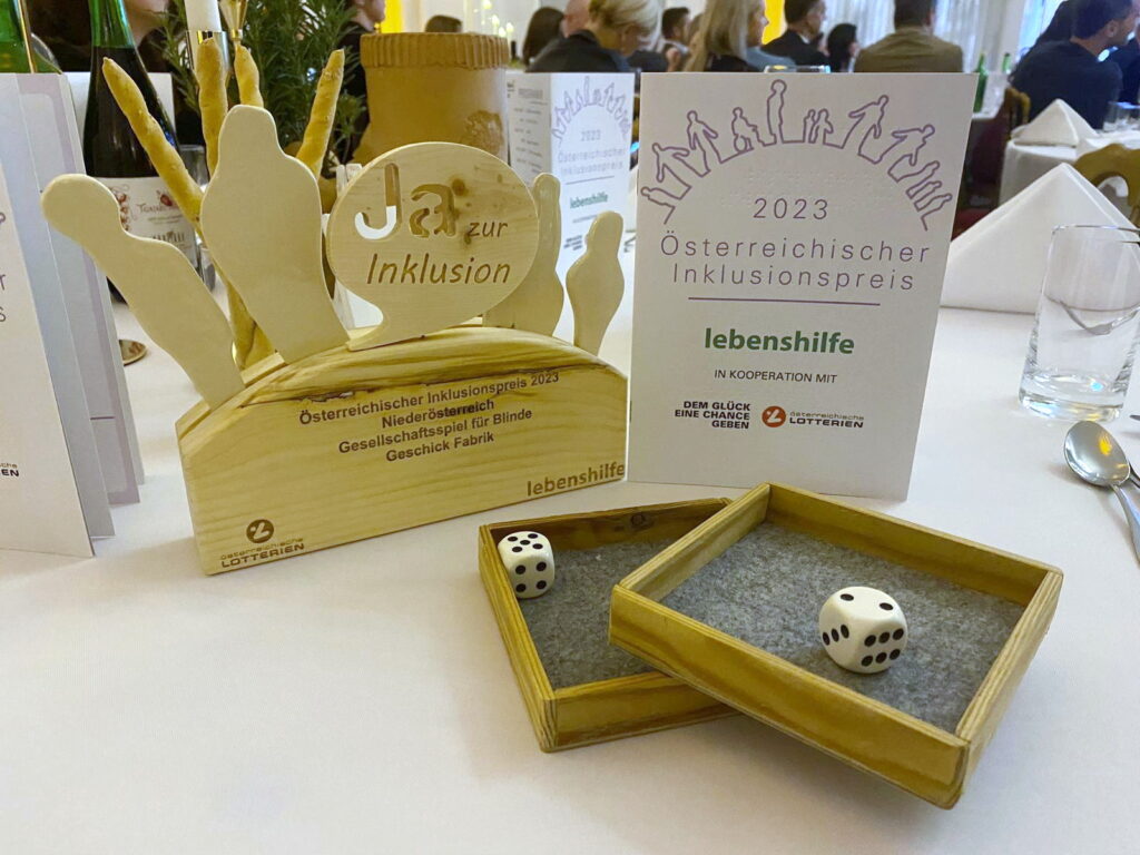 Über den kleinen magischen Laden, in Wiener Neustadt, habe ich von Nicole den Tipp bekommen, das Spiel beim Inklusionspreis der Lebenshilfe einzureichen. Ich habe eingereicht und dann im Jahr 2023 damit den Inklusionspreis fürs Land Niederösterreich gewonnen!