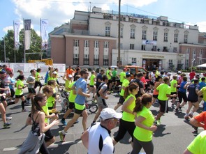 Ca. 45 min vor dem Startschuss, ging’s zum Startblock, ansonsten hätten wir keinen Platz mehr bekommen bei dieser Menschenmenge (14.000 Läufer). Dort vertrieben wir uns die Warterei mit Trinken, nochmal ein wenig aus dem Chariot rausheben und Plaudereien. Endlich 13 Uhr, in 34 Ländern fiel zu gleicher Uhrzeit der Start für unseren ersten Wings for life world run.